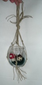 I really like how whimsical it turned out but figured it was lacking something special so………….. I made it a little hanging basket.